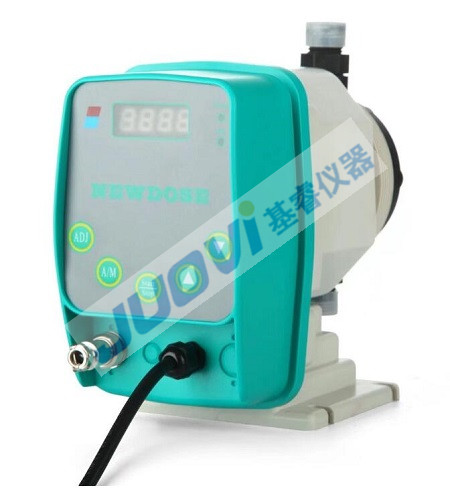 新道茨DC-02-07-L加藥泵電磁驅動隔膜計量泵 DM 系列電磁隔膜計量泵 產品特點與優勢: 可接受0/4-20mA外部電流信號、 起始點可以任意設定,可以正反比例,自動調節 LCD面板顯示 簡易操作,準確穩定 防腐塑料外殼 全PTFE隔膜 按IP55防護等級設計 多種材質的泵頭可選:PP,PVC,PTFE,SS316 雙球單向閥 頻率調節:10-100% 沖程調節:10-100% 新道茨DC-02-07-L加藥泵電磁驅動隔膜計量泵